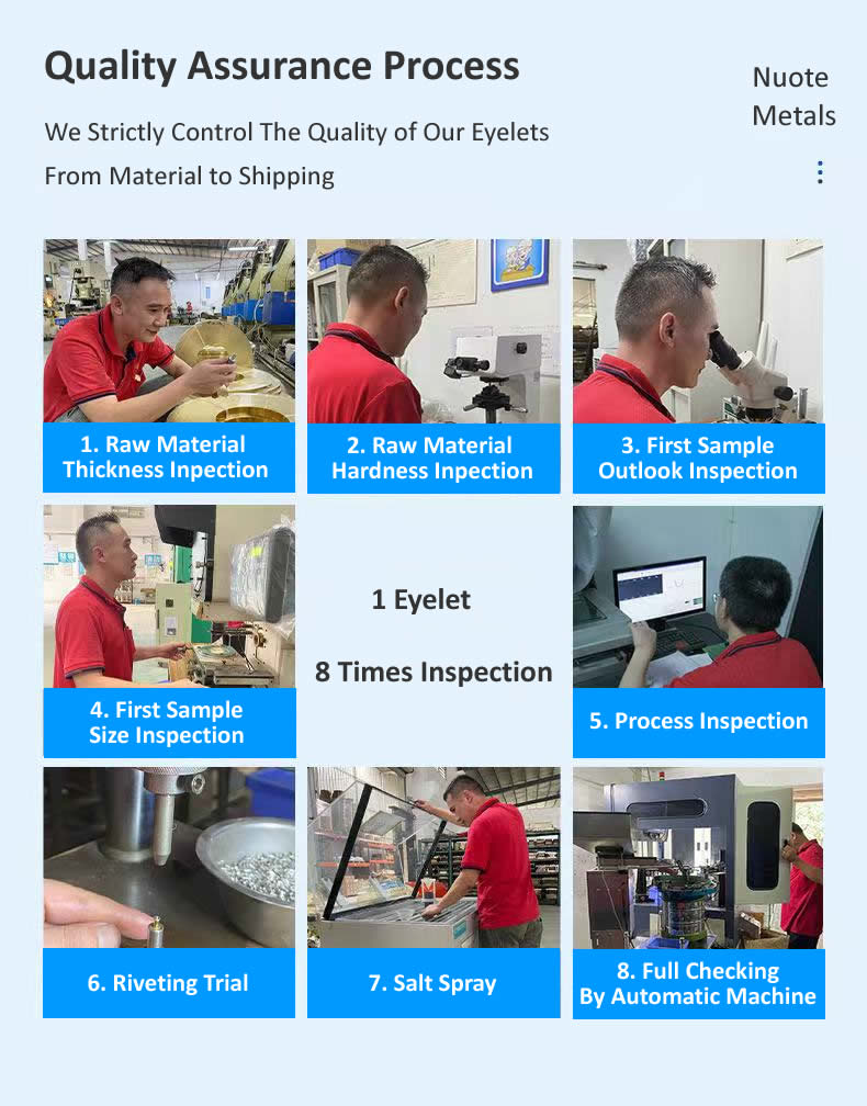 Nuote Metals は、すべてのアイレットが柔軟な生地と丈夫な生地の両方の要求を確実に満たすために、高品質の真鍮合金のみを選択しています。