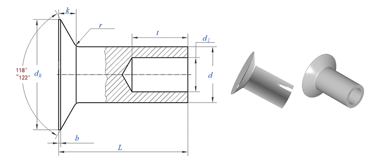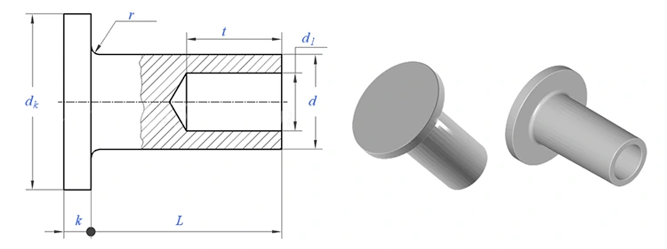 半中空リベットのリベット留めプロセスは、機械的な力に依存してシャンクの端を拡張および変形させ、接続された部品をロックする「マッシュルームヘッド」構造を形成します。製造プロセスには通常、冷間圧造、穴あけ、切断が含まれます。使用される一般的な材料には、軟鋼、アルミニウム合金、ステンレス鋼などがあります。表面処理には、耐食性を高めるための亜鉛メッキ、ニッケルメッキ、不動態化処理が含まれます。たとえば、白色亜鉛コーティングを施した半中空リベットは、湿気の多い環境でも 6 か月以上錆びない状態を保つことができますが、不動態化処理によりこれを 1 年に延長することができます。