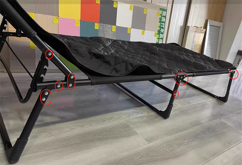 リベットアプリケーションの1つの例は次のとおりです半管状のリベット 下の写真のように、折りたたみ式ベッドに適用されます。