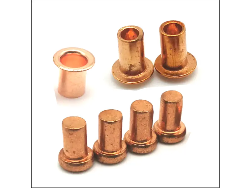 すべての標準タイプが揃っています。入手できます純銅リベット丈夫で、重いキャンバスや銅屋根など、接合部に大きな強度が必要な場所に使用されます。がある半管状銅リベットより速く設定でき、革製品や軽量の組み立てに最適です。そして、フルチューブラー銅リベット ブッシングやピボットのように機能します。頭のスタイルも、リベットを見せるか面一にするかに応じて、丸頭、平頭、皿頭などさまざまです。
